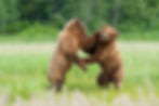 Our first bear sighting had begun–and what a sighting it was! A male brown bear was trying to mate with a female, who was clearly not interested. They stood up on their hind legs in battle mode, and the male aggressor kept trying to get her down. I had the natural urge to want to help my fellow female, but nature is crueler than the human world, and interfering would have been my last good deed on this planet. Besides, this lady could handle herself. They bit and backhanded and grappled and, once, he got her down, but she fought her way back up. Their might and power were evidenced in every swipe of their paws and every bite of their teeth. Oddly enough, I find when looking back the photographs, the bears look cute standing on their hind legs, even in battle, and that half the photos are good candidates for caption-this contests.